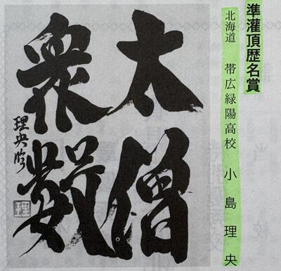 灌頂歴名部門 準大賞 書道部(1-1)小島理央